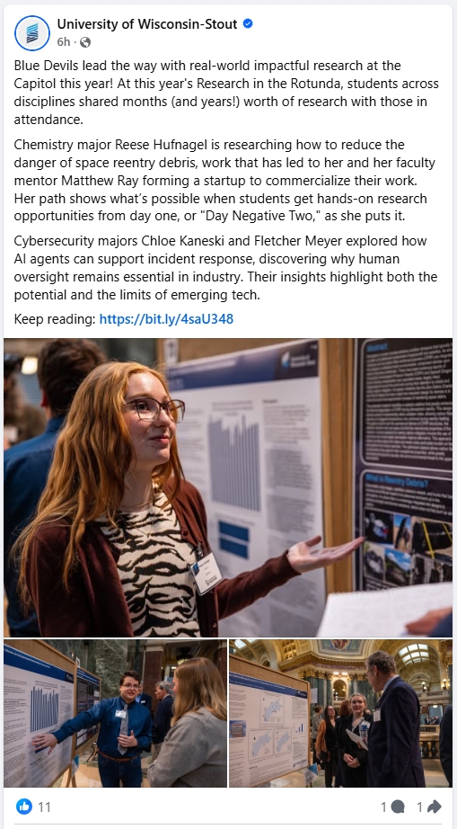 Cybersecurity majors Chloe Kaneski and Fletcher Meyer explored how AI agents can support incident response, discovering why human oversight remains essential in industry. Their insights highlight both the potential and the limits of emerging tech.